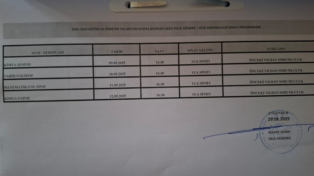 Eylül (Güz) Dönemi Sorumluluk Sınavı Programı